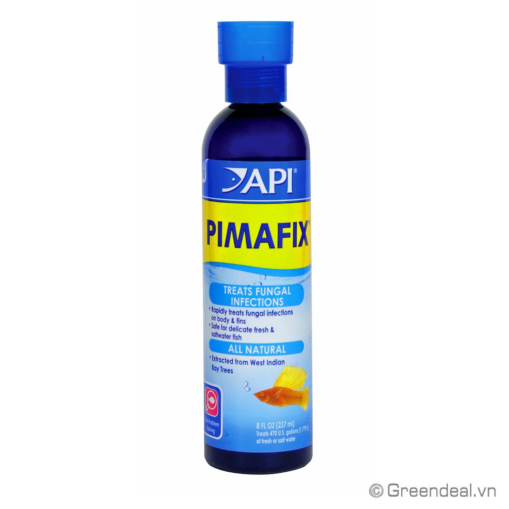 API - Pimafix là thuốc đặc trị dành cho cá cảnh được chiết suất từ cây cọ Tây Ấn có tác dụng đặc trị nhiễm nấm, dùng cho tất cả mọi loại cá từ cá Rồng, cá La Hán, cá Chép, cá Guppy...