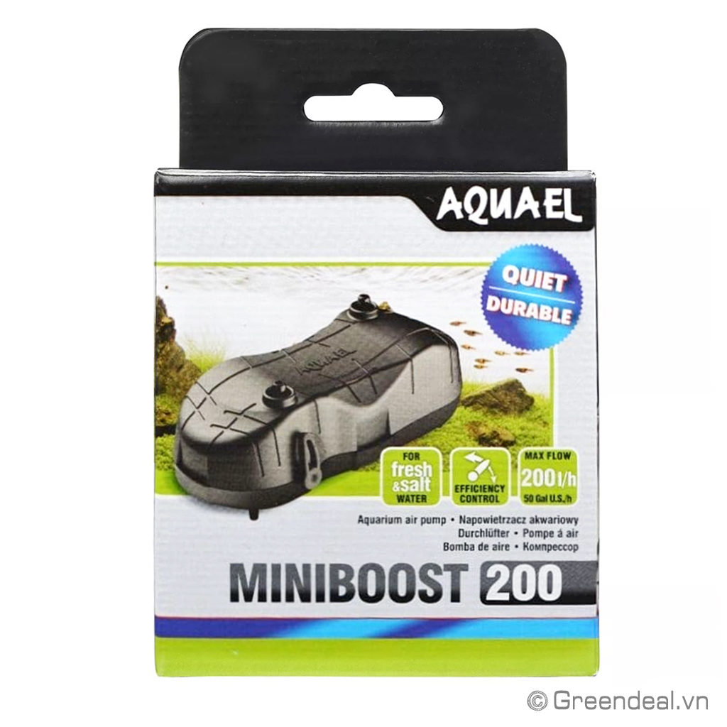 AQUAEL - MiniBoost 200 dòng máy bơm sủi 2 vòi giúp cung cấp Oxy dồi dào cho hồ cá thủy sinh có dung tích dưới 200 lít. AQUAEL - MiniBoost 200 sử dụng công nghệ tiên tiến và hiện đại được Aquael phát triển cho máy giúp đảm bảo hoạt động yên tĩnh và đáng tin cậy trong suốt thời gian dài. Hiệu suất cao của máy Miniboost 200 được kết hợp với mức tiêu thụ năng lượng thấp.