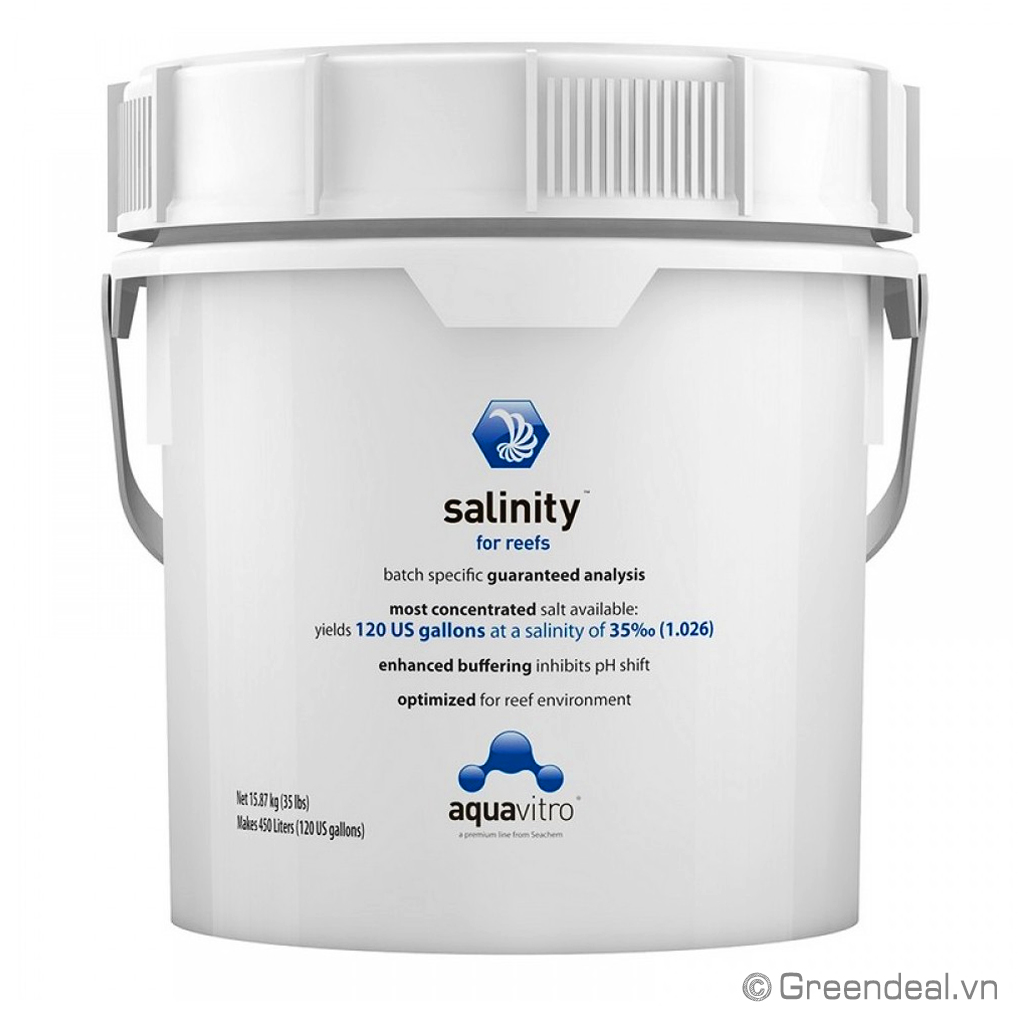 Ngoài ra, AQUAVITRO - Salinity For Reefs là hỗn hợp muối đậm đặc nhất trên thị trường với mức độ Hydrat hóa độ mặn <0,5%™ sẽ tạo ra một lượng nước muối có độ mặn 35‰ trên một đơn vị trọng lượng.