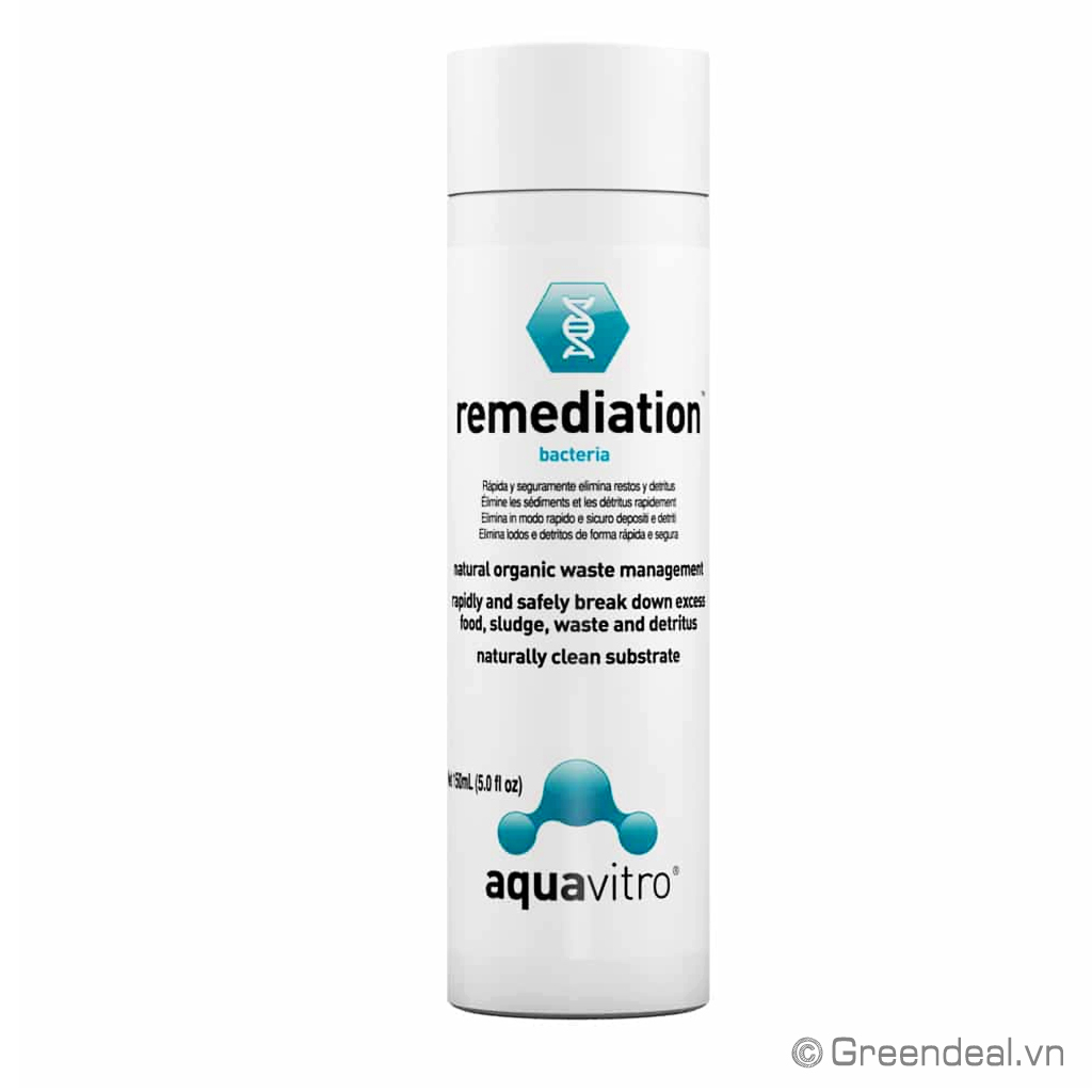 AQUAVITRO - Remediation được thiết kế để cung cấp các chủng vi khuẩn phân hủy thức ăn dư thừa, chất thải và cặn bùn trong các hệ thống lọc của hồ cá nước ngọt và nước biển nhưng mạnh và nhanh hơn SEACHEM - Pristine. AQUAVITRO - Remediation cũng sẽ làm giảm các chất dư thừa như amonia, nitrat, nitrit và phốt phát, tác nhân thúc đẩy sự phát triển của các sinh vật gây phiền toái và bệnh tật.