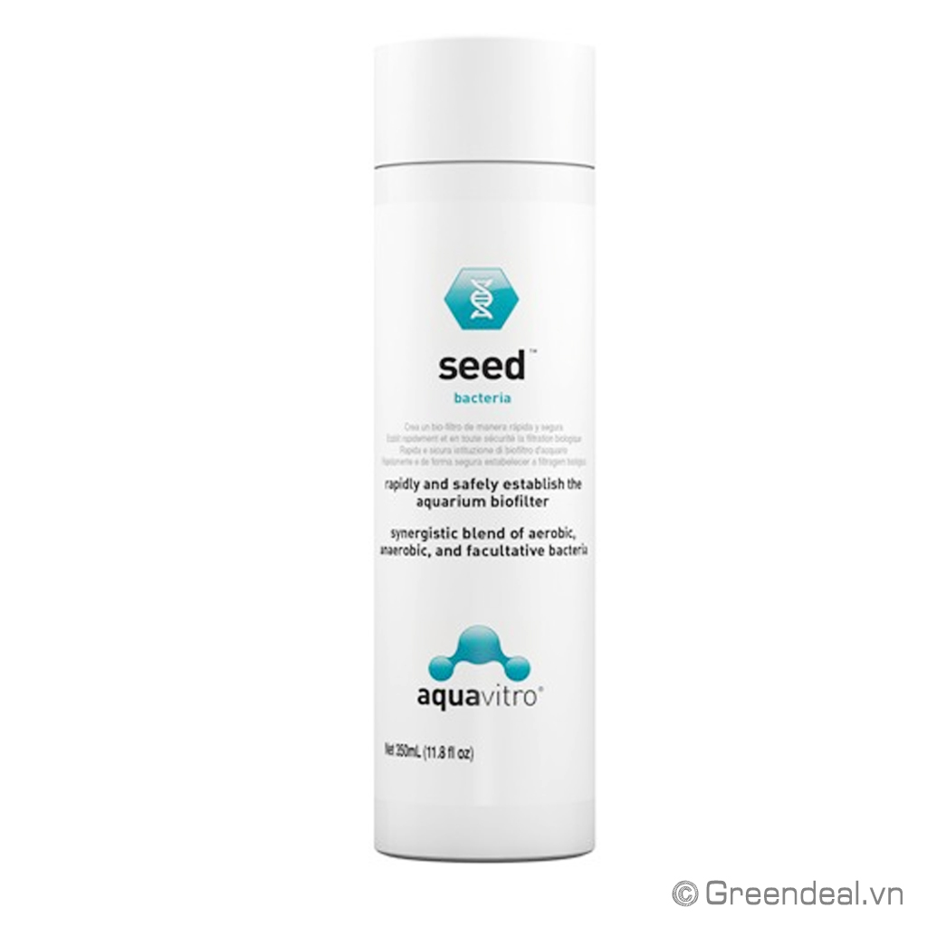 AQUAVITRO - Seed cũng là phiên bản nâng cấp của Seachem Stability, được điều chế công thức đặc biệt cho hồ cá, chứa sự liên kết của các vi khuẩn hiếu khí và kỵ khí, các chủng vi khuẩn dễ phát triển này sẽ tạo điều kiện phân hủy mạnh mẽ các chất thải hữu cơ, Amonia, Nitrate và Nitrite.