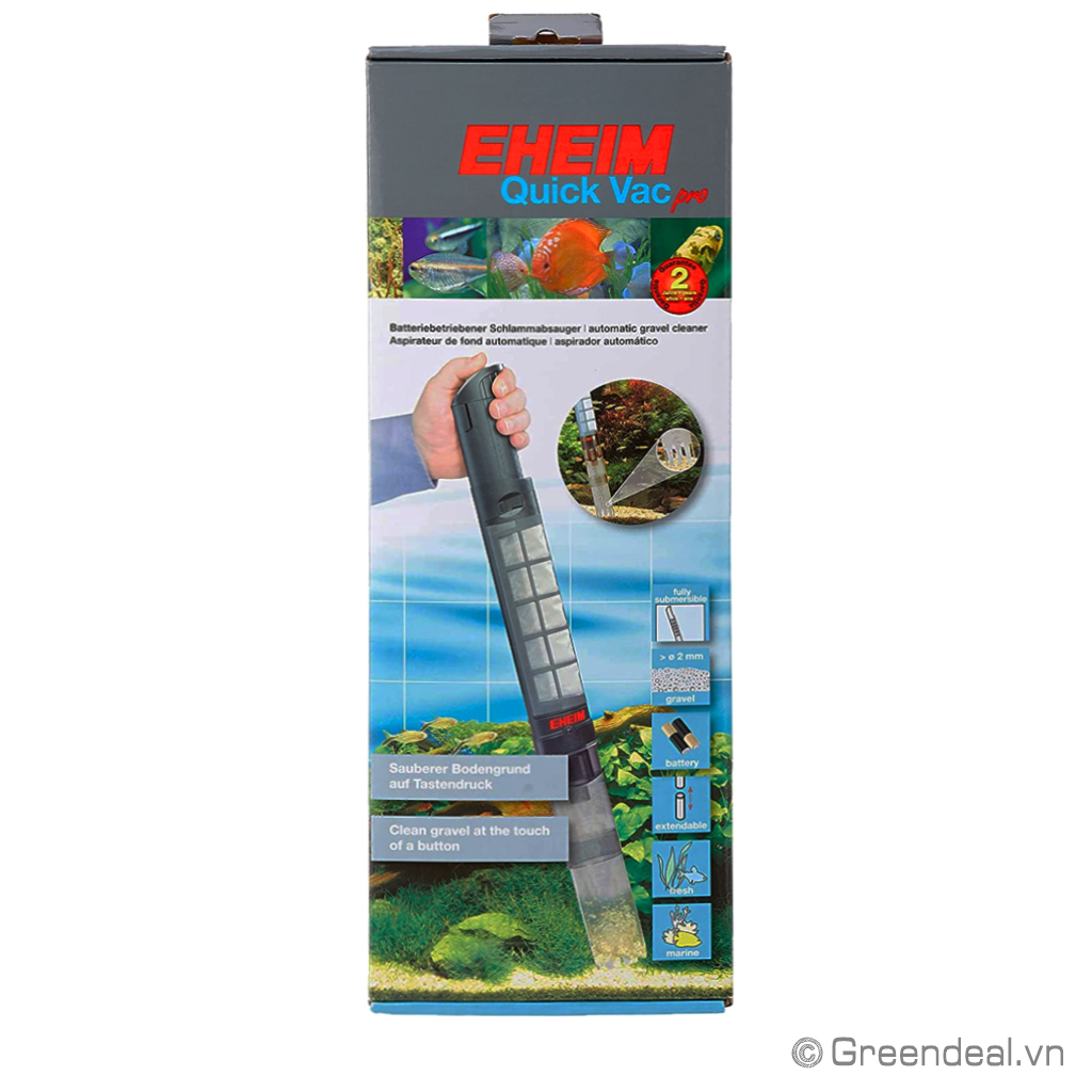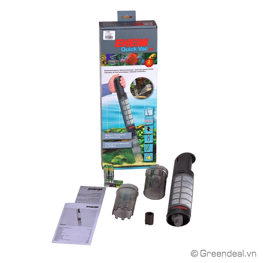 EHEIM - Quick Vac Pro là dòng máy vệ sinh hồ cá thủy sinh chạy bằng pin có công dụng hút cặn bẩn dưới đáy hồ cho hồ cá nước ngọt và hồ cá nước mặn.