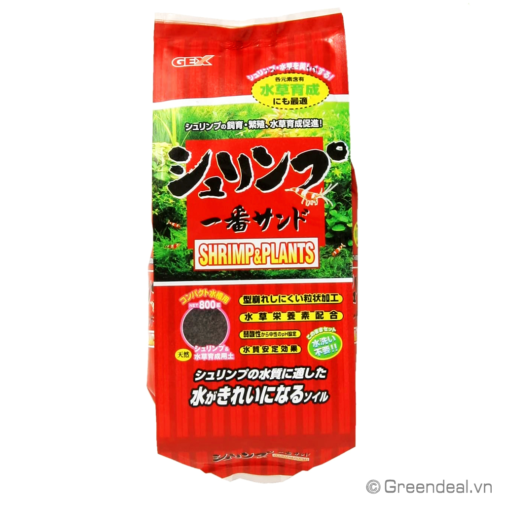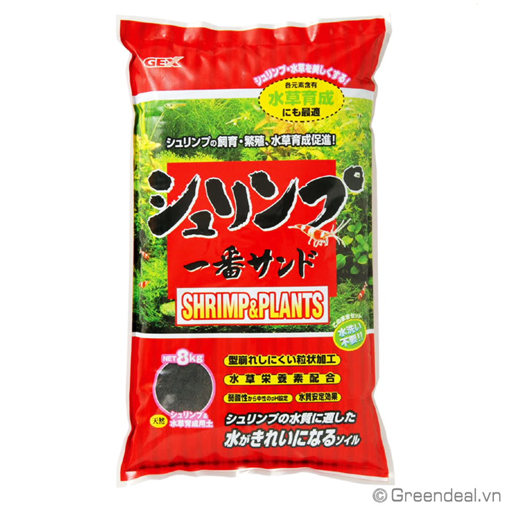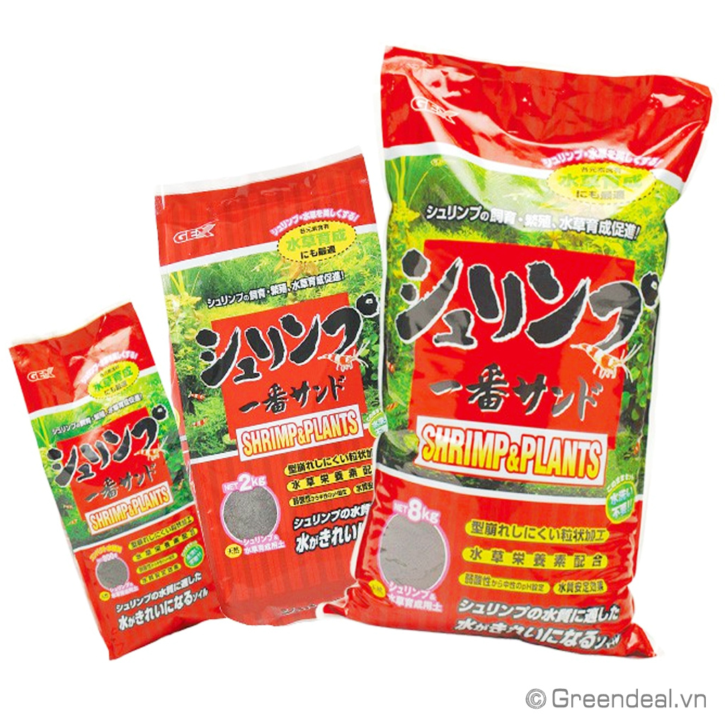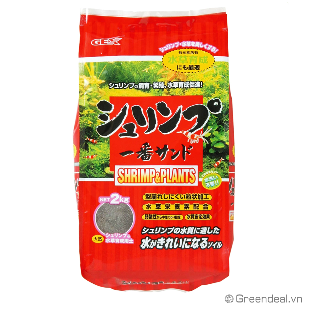 GEX - Shrimp & Plants có kích thước hạt 1-3 mm và pH = 6,0-6,5 có thể sử dụng trồng cây thủy sinh và nuôi tép.