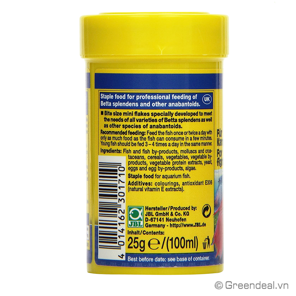 JBL - Novo Betta là thức ăn dạng mảnh chứa đầy đủ dinh dưỡng giúp đảm bảo cho sự phát triển toàn diện và kích màu lên đẹp của cá Betta.