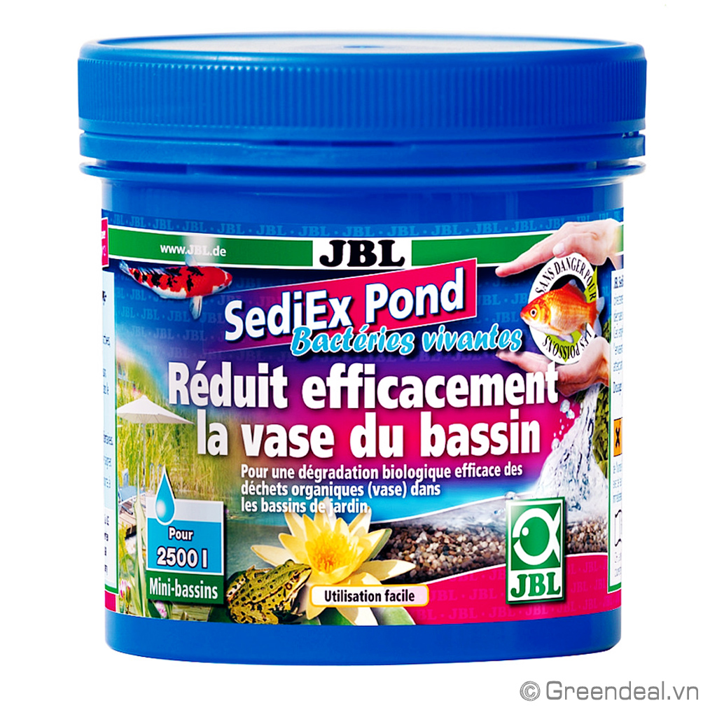 JBL - SediEx Pond cung cấp vi khuẩn dị dưỡng và hạt Oxy hoạt tính cao giúp phân hủy nhanh cặn bùn, thức ăn thừa, chất thải và các tạp chất hữu cơ dưới đáy ao hồ cá Koi, đồng thời phân giải Amoniac (NH3), Nitrite (NO2), Nitrate (NO3) có trong nước hồ.