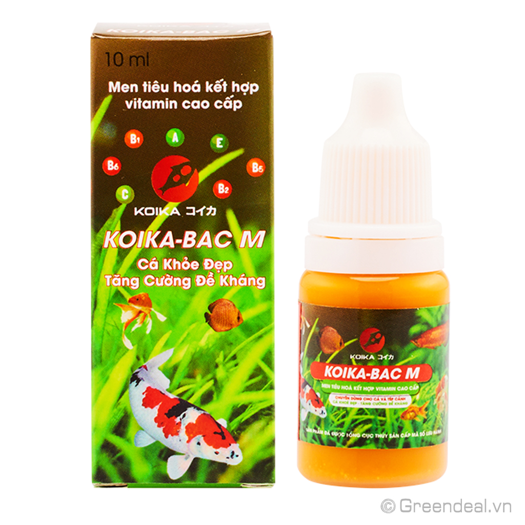 KOIKA - BAC M là dòng chế phẩm vi sinh và Vitamin đang nhận được nhiều phản hồi tích cực từ người chơi cá cảnh vì có công dụng tuyệt vời trong việc hạn chế các bệnh về đường ruột, nấm hại, ký sinh trùng, hỗ trợ tăng cường sức đề kháng, hệ miễn dịch cho cá cảnh và tép cảnh.