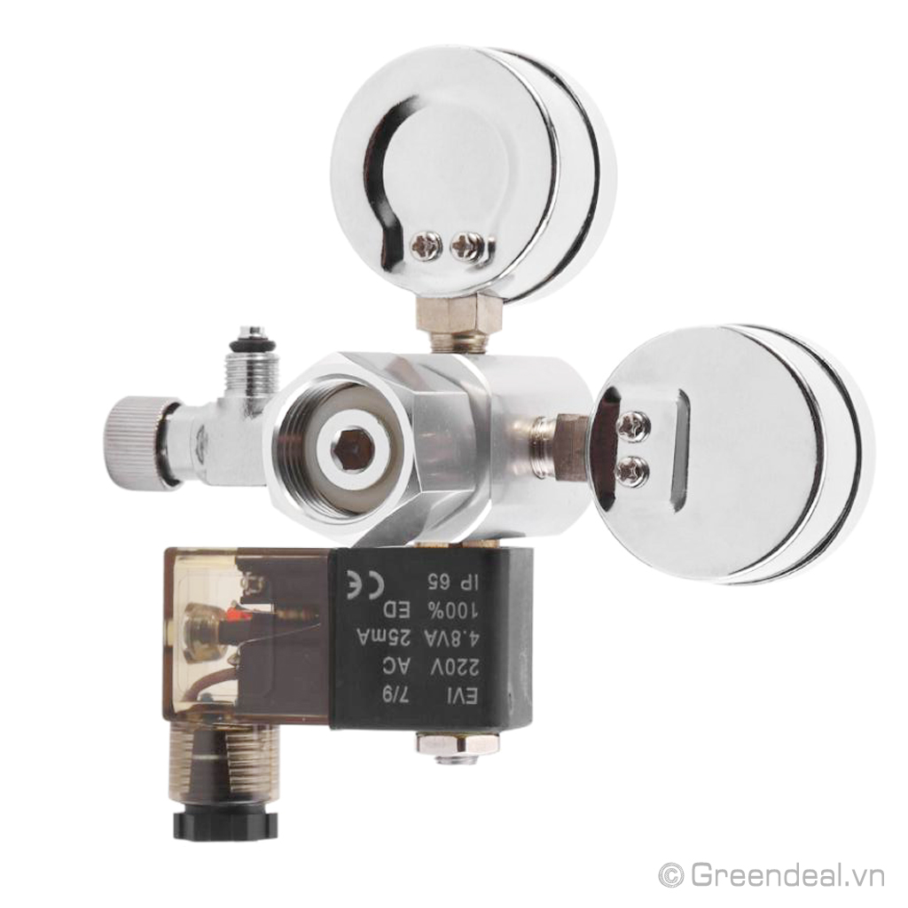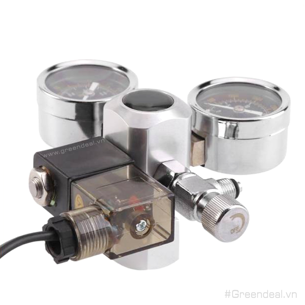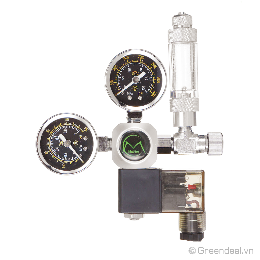 MUFAN - Van điện CO2 (G5/8) là van điện tinh chỉnh khí CO2 cho hồ thủy sinh được làm từ chất liệu nhôm sang trọng, bao gồm hai đồng hồ báo áp suất, chịu được áp lực cao. Đi kèm theo van tinh chỉnh là van điện cao cấp giúp kiểm soát khí CO2 tắt/mở theo nguồn điện cực kỳ tiện dụng.