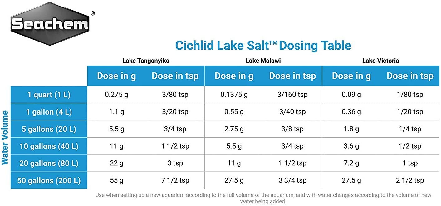 SEACHEM - Cichlid Lake Salt là chế phẩm thủy sinh ở dạng muối tổng hợp giúp tái tạo môi trường nước trong hồ thủy sinh ở mức lý tưởng cho các loài cá Cichlids.