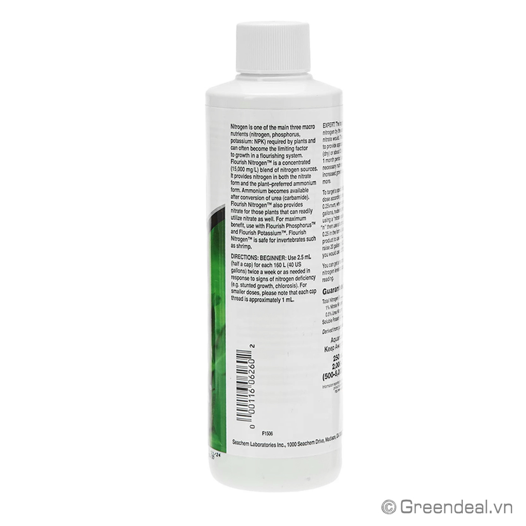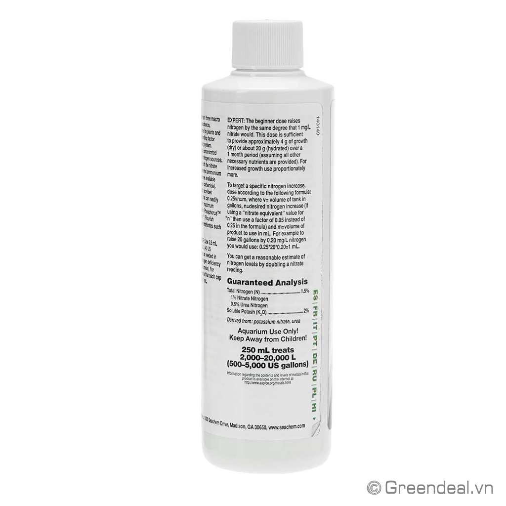 SEACHEM - Flourish Nitrogen là phân nước thủy sinh cao cấp của hãng Seachem dành cho hồ cá thủy sinh có hàm lượng Nitơ (N) cao 15.000 mg/L