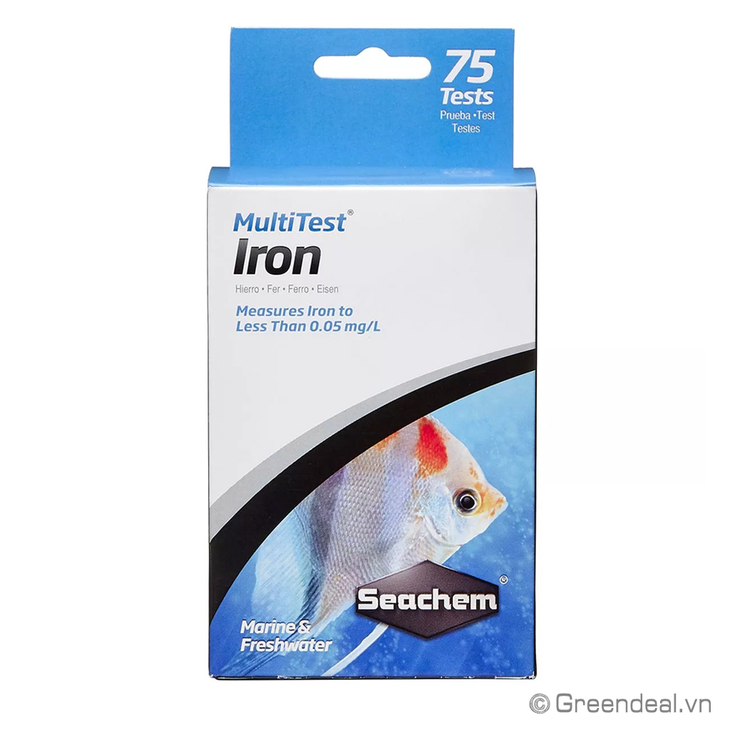 SEACHEM - MultiTest: Iron là bộ dung dịch đặc biệt có thể kiểm tra nồng độ Sắt (Fe) thấp ở mức dưới 0,05 mg/L của cả sắt ion và sắt chelat trong môi trường nước ngọt hoặc nước mặn. Bộ dụng cụ này có thể thực hiện hơn 75 thử nghiệm và chứa một mẫu tham chiếu để xác nhận.