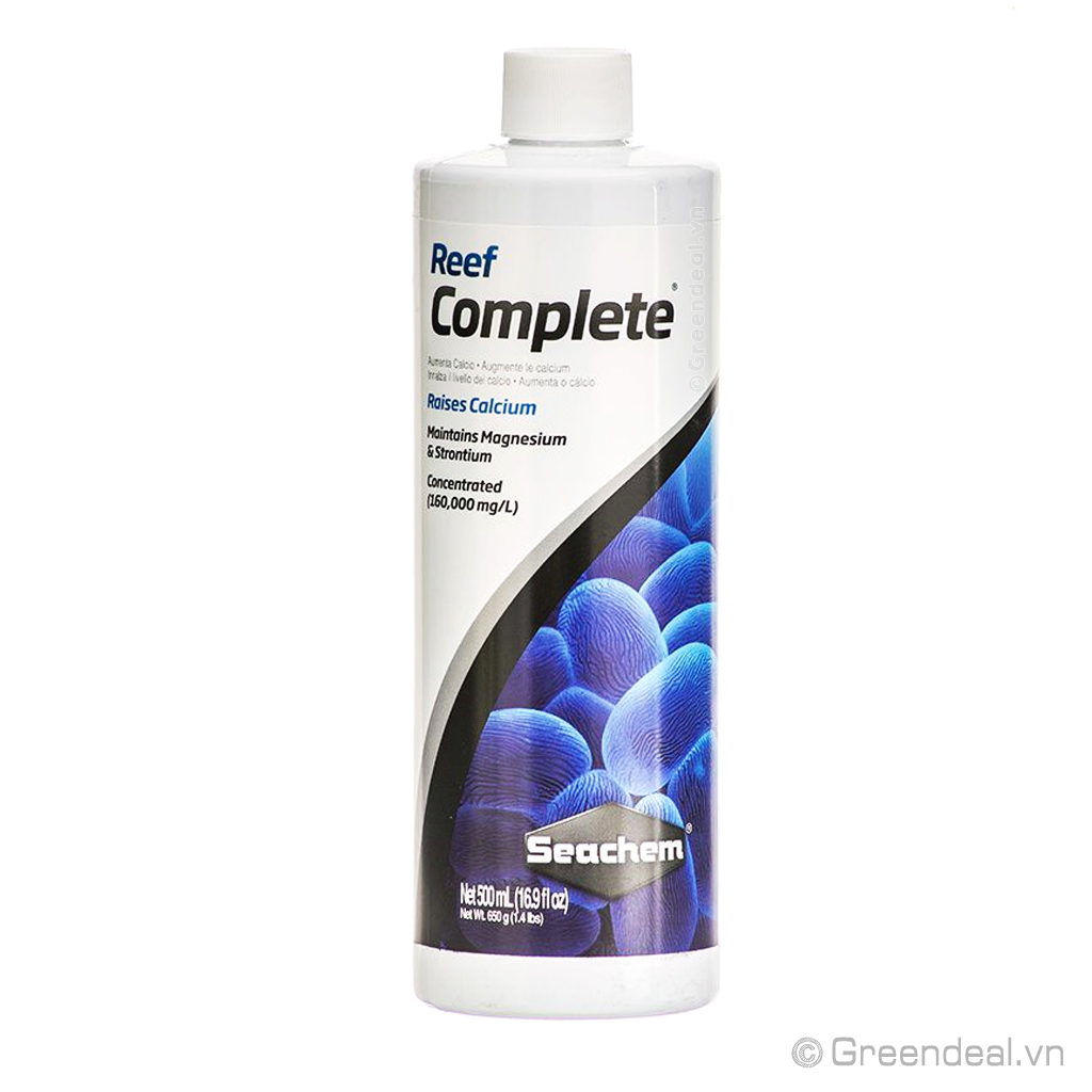 SEACHEM - Reef Complete giúp bổ sung Calcium thiếu hụt và một lượng nhỏ Magnesium và Strontium theo tỷ lệ (100 : 5 : 0.1, Ca : Mg : Sr) mà không làm thay đổi độ pH của hồ cá biển san hô