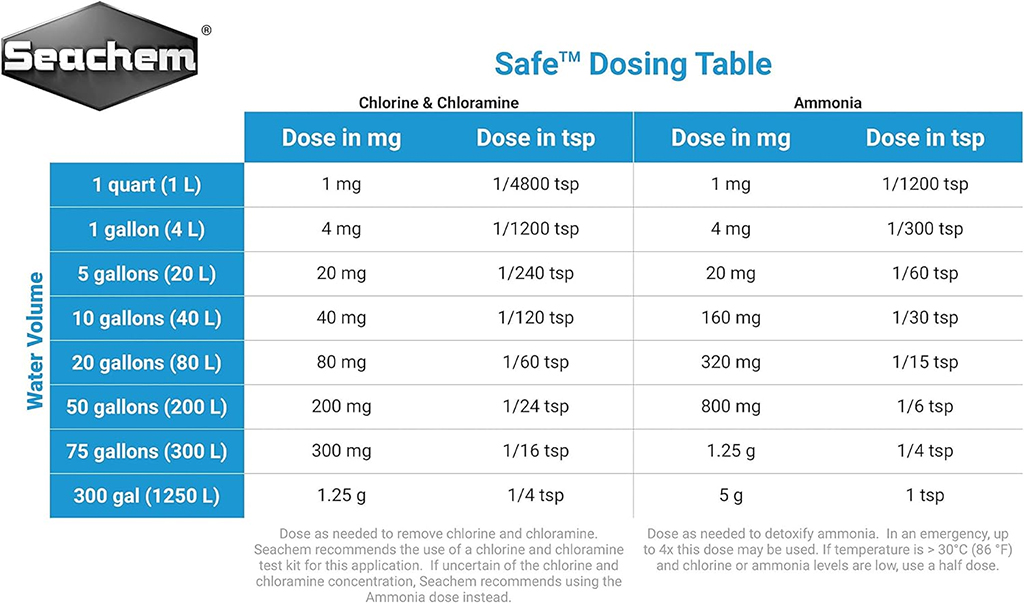 SEACHEM - Safe không ảnh hưởng đến độ pH và được dùng khi khởi tạo hồ mới, châm nước, thay nước hoặc sau khi sử dụng thuốc.