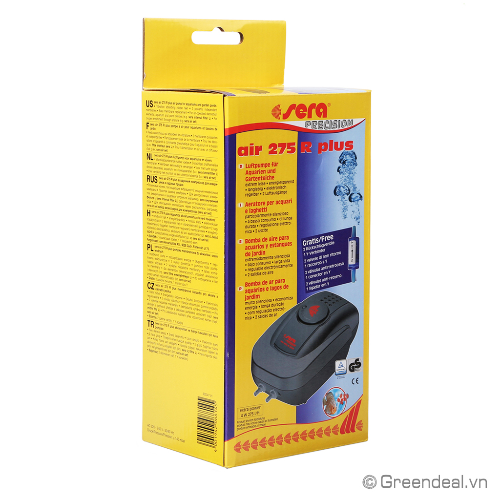 SERA - Air 275R Plus là máy bơm sủi Oxy cao cấp dành cho hồ cá thủy sinh. Thuộc một trong số các dòng máy Oxy tiết kiệm điện, bền bỉ và không gây ồn. Máy có nút điều chỉnh lưu lượng khí mạnh yếu phù hợp cho mọi nhu cầu sử dụng.