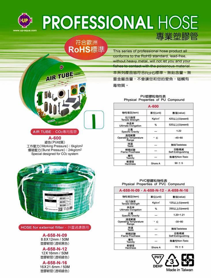 UP AQUA - Professional Hose là dây ống dẻo chống gập có thiết kế màu xanh lá giúp che bớt vết cặn bẩn lâu ngày bám trong thành ống, tăng tính thẩm mĩ dành cho lọc thùng, ống dẫn nước của máy bơm nước và hệ thống lọc hồ cá thủy sinh.