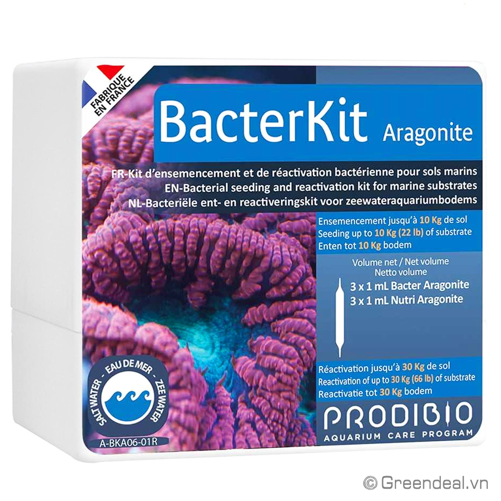 PRODIBIO - Bacter Kit Aragonite là bộ sản phẩm đặc biệt giúp khởi tạo và hỗ trợ ổn định hệ vi sinh cho tất cả các loại lớp nền của hồ cá biển. Bộ gồm 1 ống chứa vi khuẩn Bacter Aragonite và 1 ống Nutri Aragonite chứa Prebiotics kèm vi chất dinh dưỡng cho những vi khuẩn này.