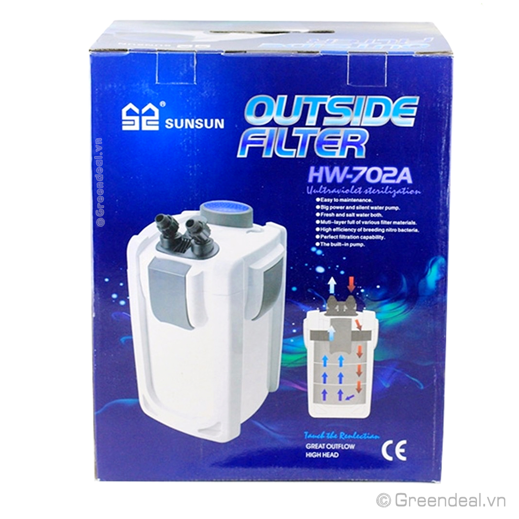 SUNSUN - Outside Filter HW-702A là mẫu lọc thùng dành cho hồ thủy sinh với thiết kế hiện đại, có màu trắng sang trọng, tiết kiện điện năng